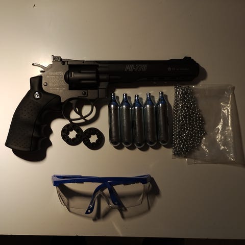Komplett kit för en Dan Wesson revolver, med 23 co2 patroner medföljande,