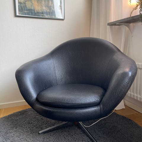 Fin fåtölj med snurrfunktion i välbevarat skick. Ben i jakarandaimitation.