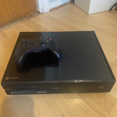 Microsoft Xbox One spelkonsol svart, med två handkontroller och 14 spel