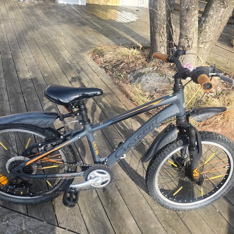 Barncykel med 20" hjul i blå färg. Utrustad med korg fram, kedjeskydd och skärmar. Lämplig för barn som passar storlek 20" och för vardagscykling till skola, fritidsaktiviteter och lek.