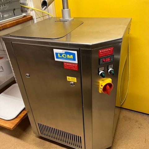 Sex automatiska program, inkl gelato, sorbeter,fruktslush samt Crystal. Smidig bänkmodell. Från pastörisering till frysning, allt i samma maskin. Producerar 2-4 kg. Höjd 765, bredd 580, längd 455. Vikt 142 kg. Väl underhållen och fungerar mycket bra!