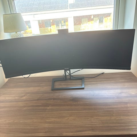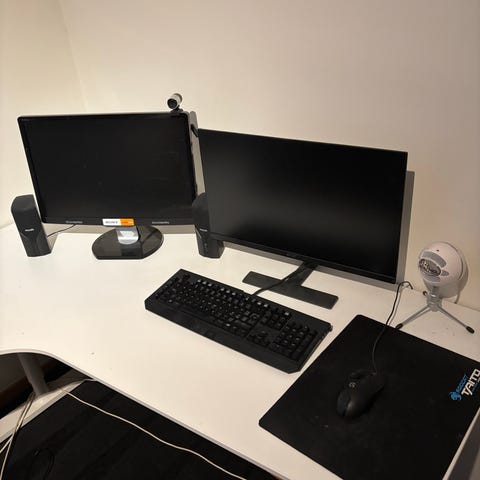 27" och 24" skärm + gasarm för dubbla skärmar