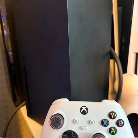 På bilderna syns även två gröna batteripack som kan användas tillsammans med handkontrollerna och slipper man köpa batterier onödigt och istället laddar man med en kabel.