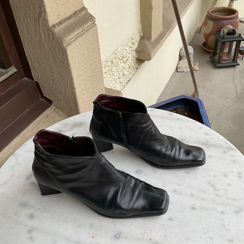 Svarta lÄga stövletter i mjukt skinn.