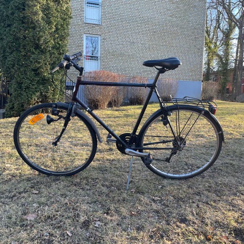 Cykeln har en mediumram optimalt för 165-175cm, men sadeln kan höjas så att även personer upp till ca 180-185cm sitter bekvämt.