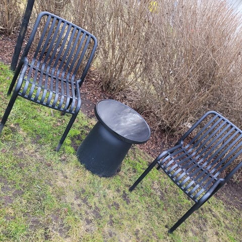 Cafeset med två stolar och runt bord svart