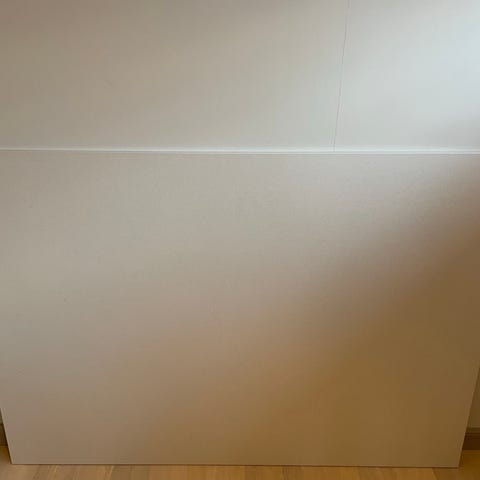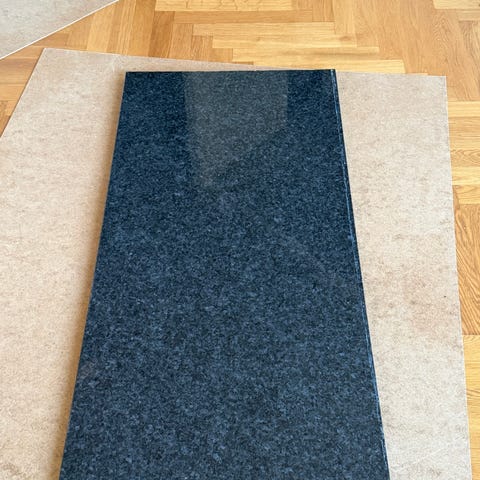 Har suttit som bänkskiva och stänkskydd i kök under kort period.