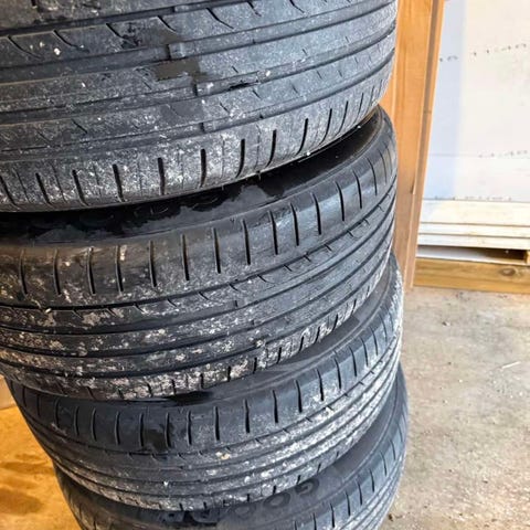 Lösa sommardäck suttit på en Porsche Taycan