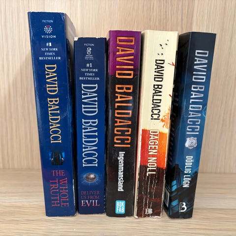 Bokpaket med blandade författare innehållande främst thrillers och science fiction-romaner. I paketet ingår bland annat titlar av Jan Guillou, Patrick Robinson, Craig Thomas, Arthur C. Clarke, Tom Clancy och Robert Ludlum. Böckerna är i pocket- och inbunden utgåva i blandade färger. Lämpligt för den som vill läsa spänningsromaner och science fiction i en samlad samling.