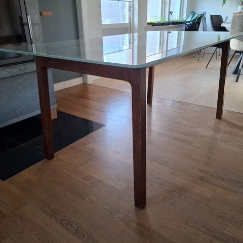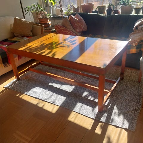 Fantastiskt bord i teak som tyvärr är för stort för vardagsrummet och därför letar nytt hem. Ett måste för alla retro/vintage älskare där ute. Trädet är mörkare i verkligheten, halvtaskigt ljus. Bordet är gammalt så det finns några skönhetstecken, men inget jag märker av. Priset kan diskuteras vid snabb affär.