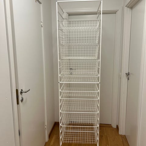 Tre trådbackar från elfa pluss fäste från elfa och IKEA bortskänkes.