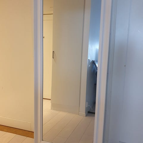 Stor Vit spegel från Jysk 180 cm hög 78 cm bred. Nypris 1500 säljes för 300. Några svarta märken finns i underlant, kanske går polera bort