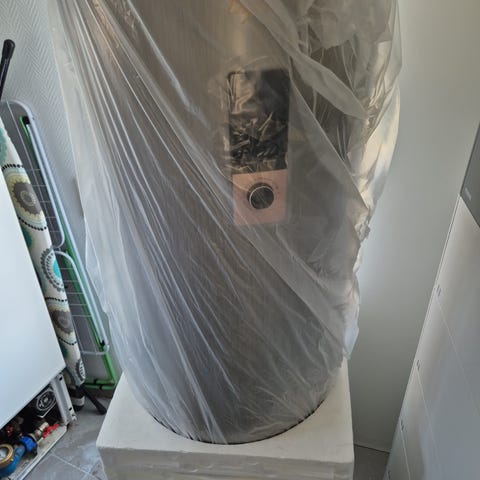 OSO Wallsmart varmvattenberedare 80 Liter. Cylindrisk, vägghängd modell med elanslutning upptill och anslutningar i nederkant. Avsedd för produktion och lagring av tappvarmvatten i bostäder eller liknande utrymmen. Enheten har integrerad styrning och indikatorlampa på undersidan. Passar installation i exempelvis badrum, grovkök eller förråd där det finns behov av varmvattenförsörjning.