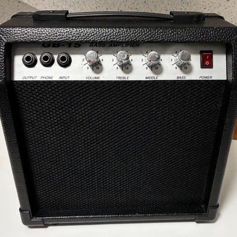 25 watt övningsförstärkare med bas, mellanregister och diskantkontroller. Har även aux-ingång och hörlursutgång för tyst övning.
