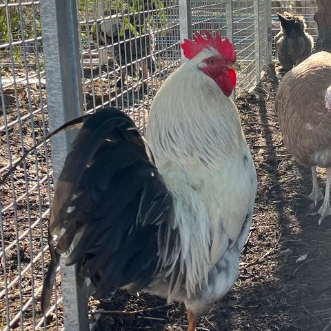 Tupp i brun och svart färgteckning. Fjäderdräkten är brun på hals och rygg med mörkare, nästan svarta grön stjärtfjädrar. Passar i hönsflock för avel eller sällskap. Hålls i hönsgård och går ute i hage. ålder 6månader.