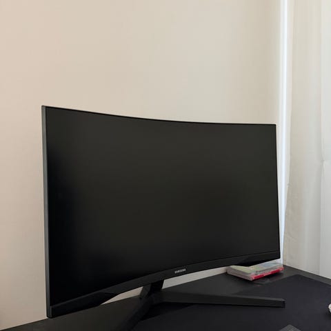 Stor och fin gamingskärm från Samsung med HDR, 144hz refresh rate, 2560x1440-upplösning, 1 ms responstid, AMD Freesync, och 1800R kurvatur.