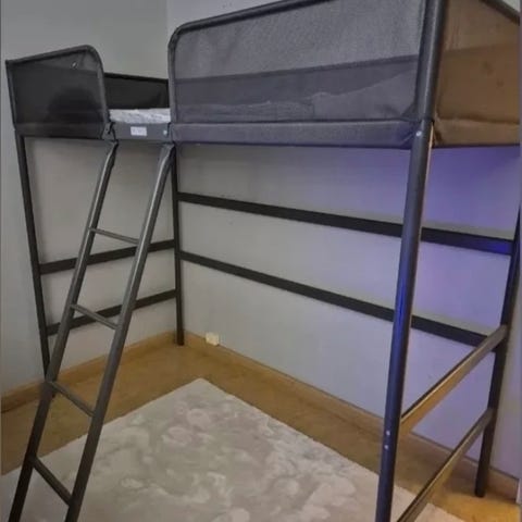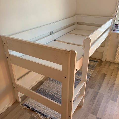 Den är i fint använt skick med massor av liv kvar. Madrass ingår också.