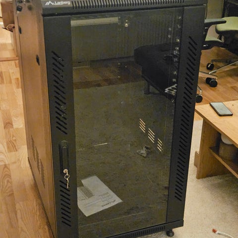 Rackmonterat datorchassi/serverrack med moderkort och nätaggregat