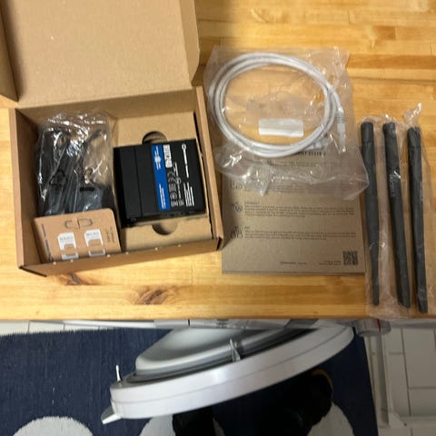 Levereras med strömadapter, nätverkskabel (1,5 m) och antenner. Anslutningar: 2x SMA-honor (4G), 1x RP-SMA-hona (wifi). SIM-kort: Mini-SIM. Driftspänning: 9-30 V (DC). Strömförbrukning: 5 W. Mått: 83x74x25 mm. Vikt: 125 g.