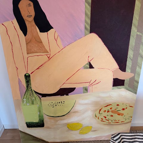 Hk Living tavla med porträttmotiv i flerfärgade toner. Konstverket föreställer ett närgånget ansiktsporträtt mot en ljus bakgrund. Passar som väggdekoration i exempelvis vardagsrum, sovrum eller hall. Material och exakta mått är 1900x1400