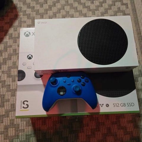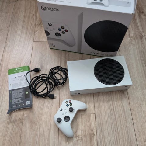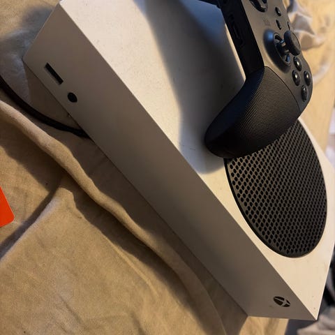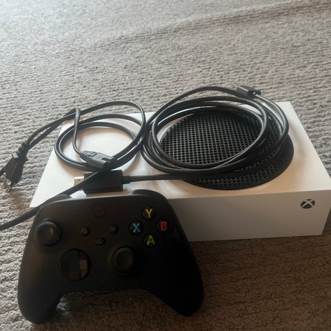 Xbox series s med alla kablar en laddning station och 3 bra och fina dosor, allt funkar bra men tror att 2 av dom har kanske stick drift men inte säker.