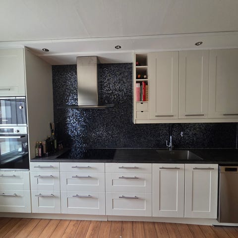 Fint komplett kök (5 meter långt) inkl kolfiberfläkt, induktionshäll, inbyggnadsugn, diskmaskin, vattenblandare och dubbla diskhoar. Förmodligen Epoq. Bänkskivan behöver oljas in. Köket är från 2010. Demonteras och hämtas av köparen. Pris 6000. Kakel ingår ej. Finns i Simrishamn (Vik).
