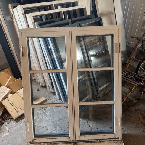träet visar skador och slitage, Lämpat för den som behöver ett större glasparti för bygg- eller renoveringsprojekt.
