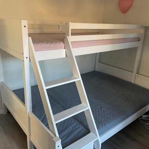Helt oanvänd Vit våningssäng/familjesäng med låda under säng.