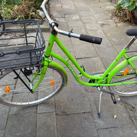 Ny ringklocka, nytt framljus, Nytt däck o slang framhjul. Däck bakhjul mycket bra skick. Nyservade bromsar. Inklusive pump, korg och regnställ.
