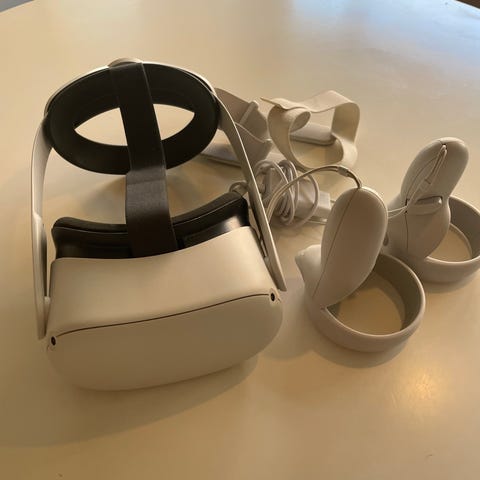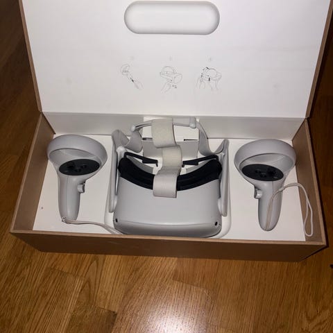 Quest 2 med elite strap, elite face pad och en 3 meter oculus kabel. Sparsamt använd, fungerar suveränt.