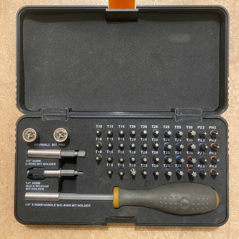Verktygssats med blandade handverktyg och bits. Kan hämtas i Boden eller tas till Luleå.