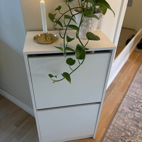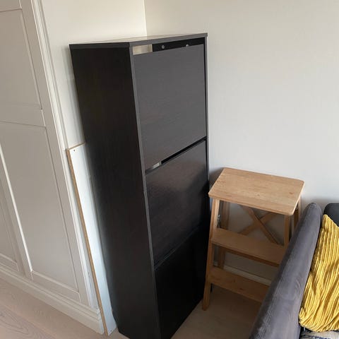 Säljer ett mycket fint skoskåp från Ikea som heter Bissa, färg typ svart/brun men mer åt det svarta hållet.
