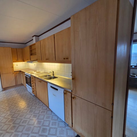 Finns även bänkskiva, diskmaskin (helt OK), spis (sådär)