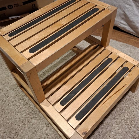IKEA pall stege i bambu. Tvåstegspall som kan användas som extra sittplats, avlastningsyta eller för att nå högre hyllor i hemmet. Tillverkad i bambuträ med naturlig träyta som passar i de flesta rum, till exempel kök, hall eller sovrum.