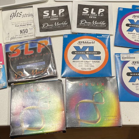 2 paket bassträngar. Ett rounds och ett flats. Helt nya och oöppnade.