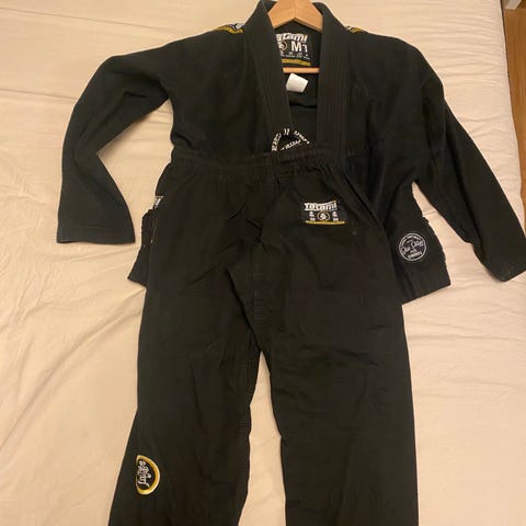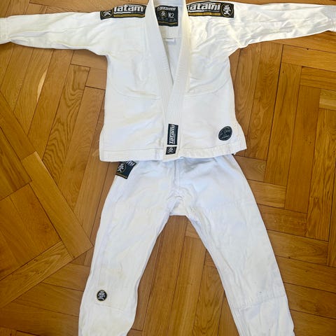Chokem och Tatami BJJ dräkter för kampsport, barnstorlek one size (6-8 år ca). Seten består av jacka och byxa i kraftigt tyg, en vit dräkt med broderade logotyper samt en blå dräkt med broderade logotyper. Avsett för barnträning inom brasiliansk jiu-jitsu eller liknande kampsporter där gi används.