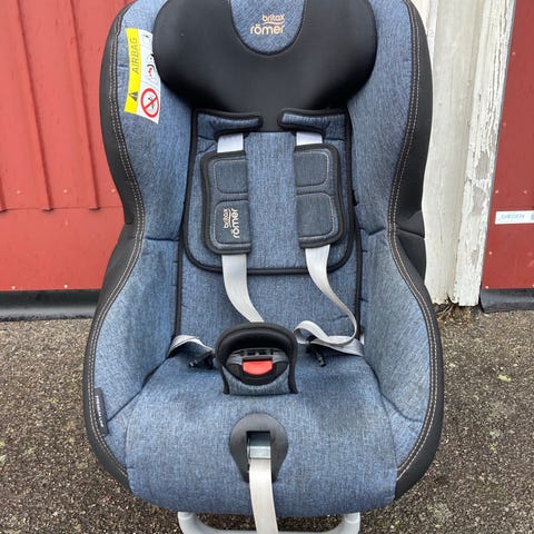 Britax Römer bilbarnstol för barn upp till 25 kg. Bakåtvänd stol med intern fempunktssele och stödben. Klädsel i blått tyg med svarta detaljer. Stolen monteras med bilens trepunktsbälte enligt anvisningar på stolens etiketter. Plusgodkänd.