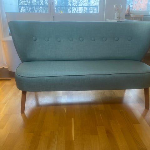 Fin grön soffa designad 1958 av av Kerstin Hörlin Holmqvist för Nordiska kompaniets Triva-serie.