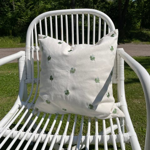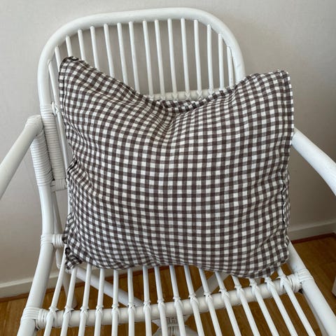 Jättefint kuddfodral i franskt linnetyg, i en så vårig Caramellfärg med vitt!