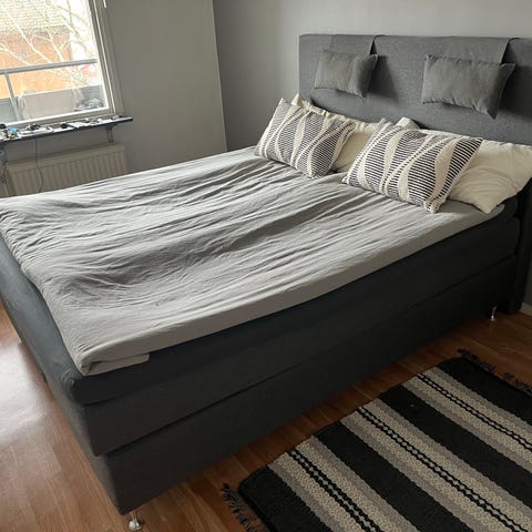 Säljer vår kontinentalsäng i bra skick. Aluminumben.