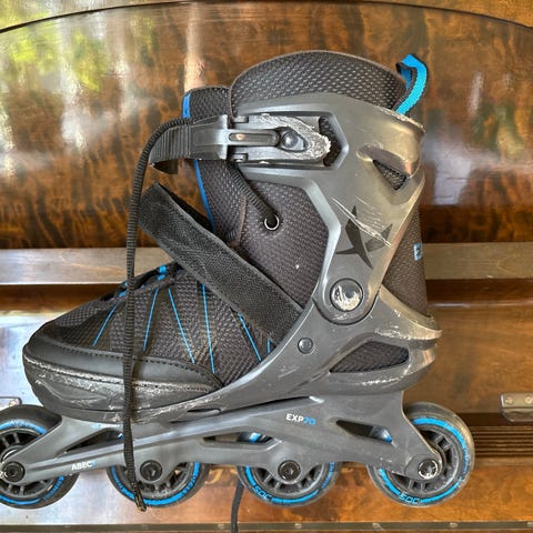 Mega G-Skates rullskridskor i storlek 38. Modellen har svart och vit ovandel med snörning och fyra hjul monterade i par fram och bak. Yttermaterialet är ett syntetiskt material med förstärkt tåparti. Rullskridskorna är avsedda för åkning på plana underlag utomhus eller inomhus och passar för rekreationsåkning inom kategorin rullskridskor och inlines. Går bra att tabort hjulen och åka på en isbana.