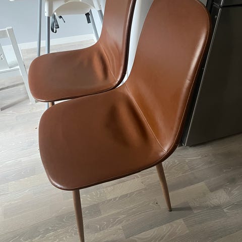 Säljer 4st kökstolar från Rowico. Stått i en lägenhet som jag inte bott i på ett och ett halvt år. I princip oanvända. Två svarta och två cognac färgade
