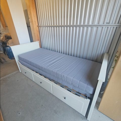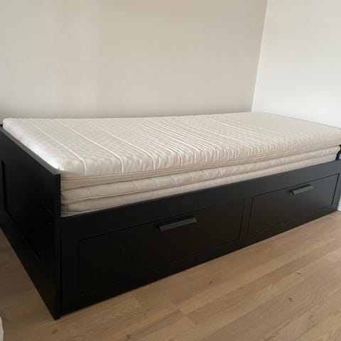 Fin bäddsoffa med madrasser. Mycket lite använd. Utdragen blir den 160 cm.