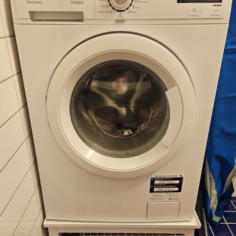 Electrolux frontmatad tvättmaskin vit.Pallen ingår i köpet