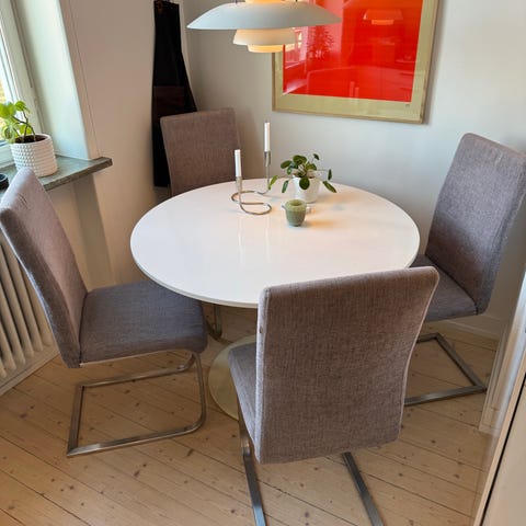 Två stolar i mkt fint skick, som nya! Beige tyg, oskadat. Köpta på Mio, blev 2 för mkt. Nypris 1000kr