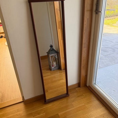 Design House Stockholm spegel i Ek. Fristående helkroppsspegel med träram och fot 2.10 hög 95 bred. Passar för användning i hall, sovrum eller klädkammare för helkroppsvisning och som inredningsdetalj.