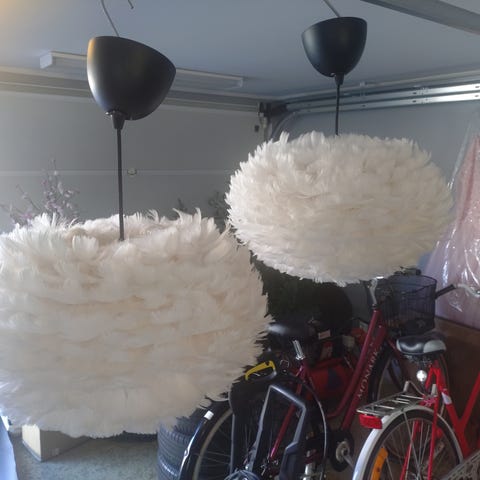 Säljer en av mina fina Eos lampskärmar med handgjord design med mjuka fjädrar för att skapa en harmonisk atmosfär i rummet.