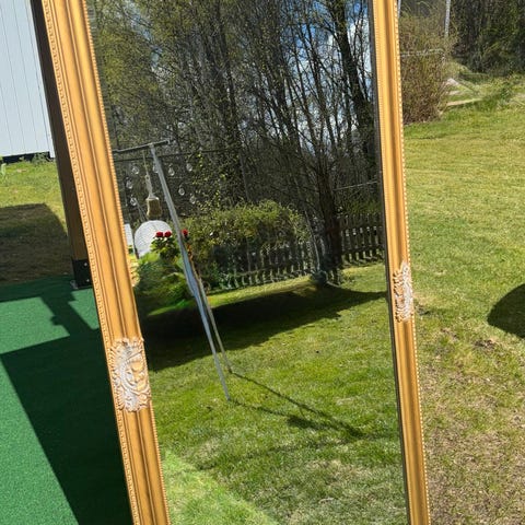 Spegeln har viss oxidation på glaset som ger den en dekorativ patina.
