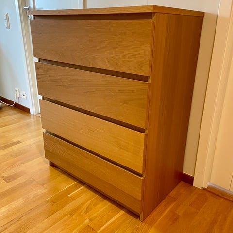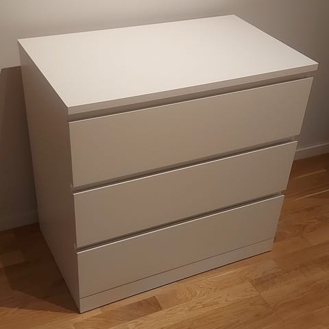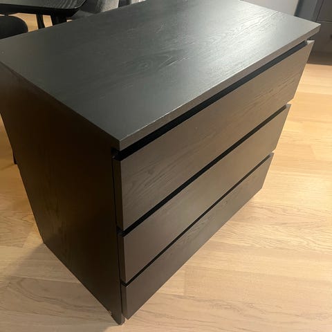 Vår fina IKEA Malm byrå(3 lådor) letar nytt hem. Använd endast ett halvår, den är i nyskick. Inga repor eller skavanker, och lådorna fungerar felfritt.