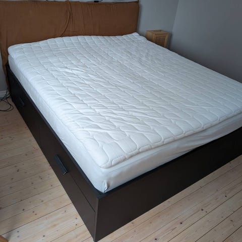 Fin dubbelsäng med madrass säljes pga flytt. Höjd upp till madrassens ovansida är 50 cm. Hämtas i Svartvik senast 16 mars.